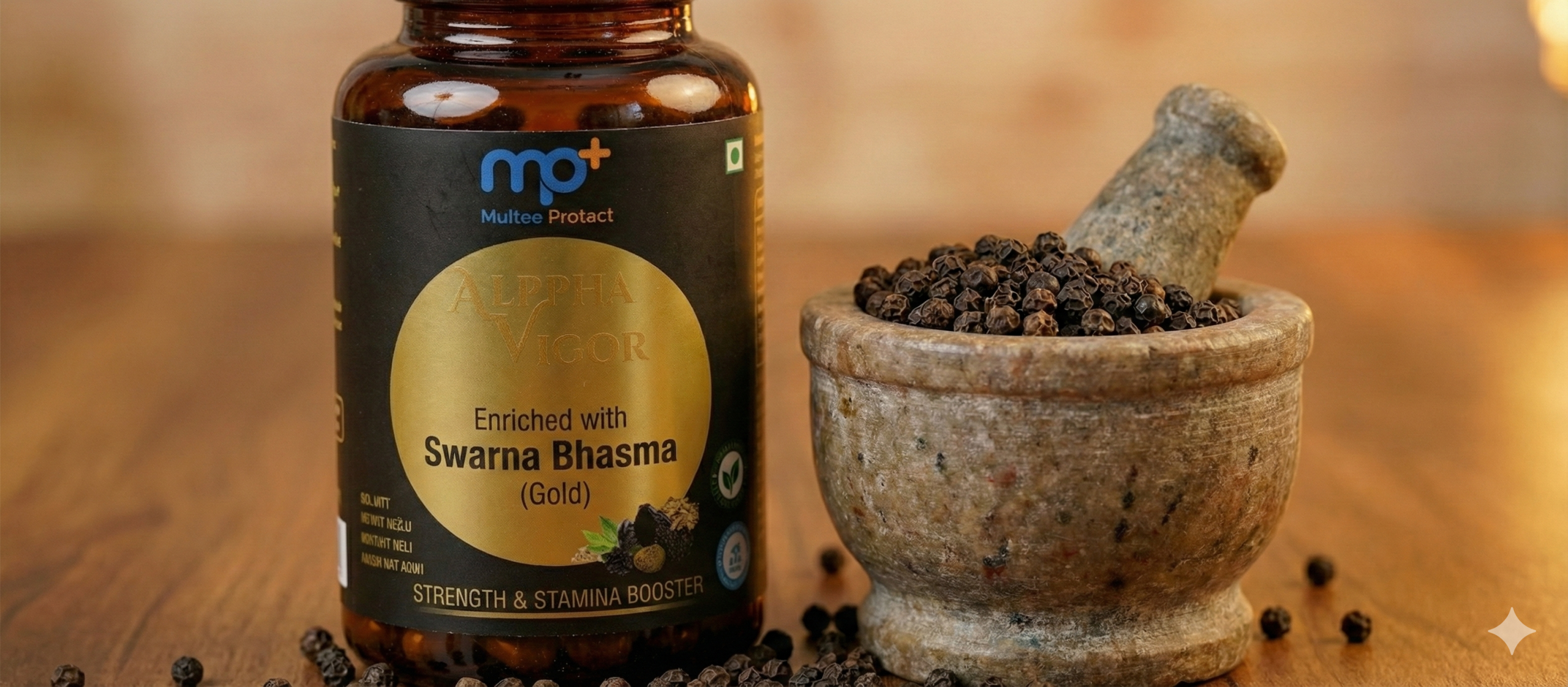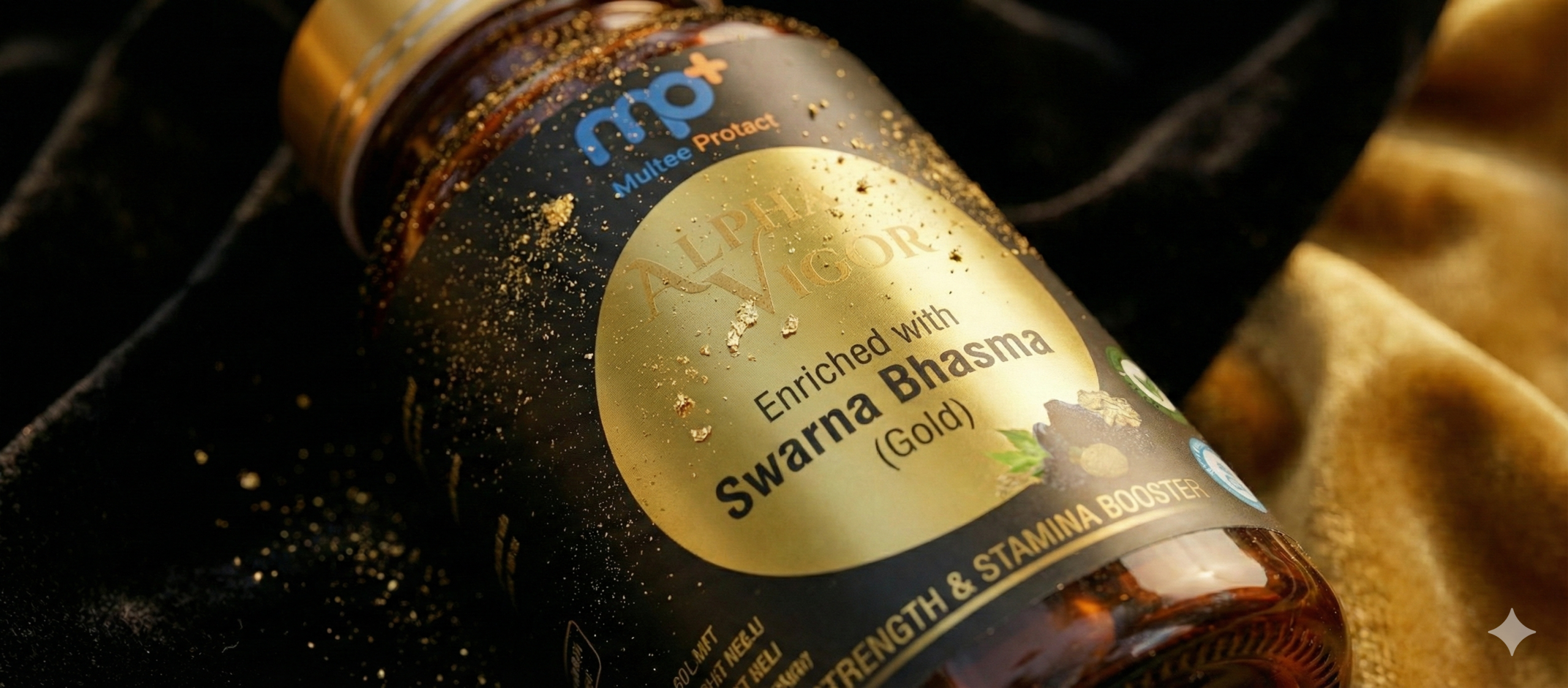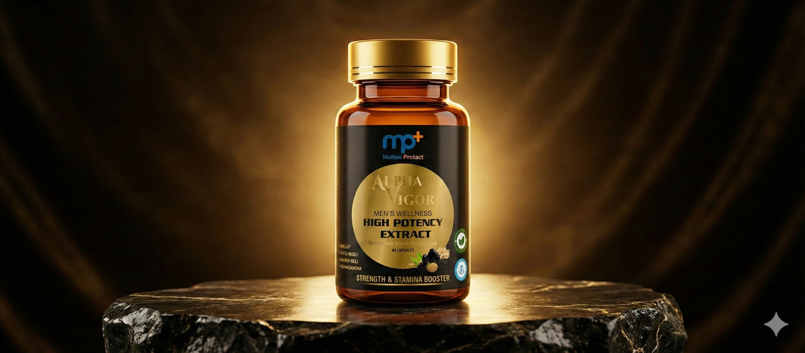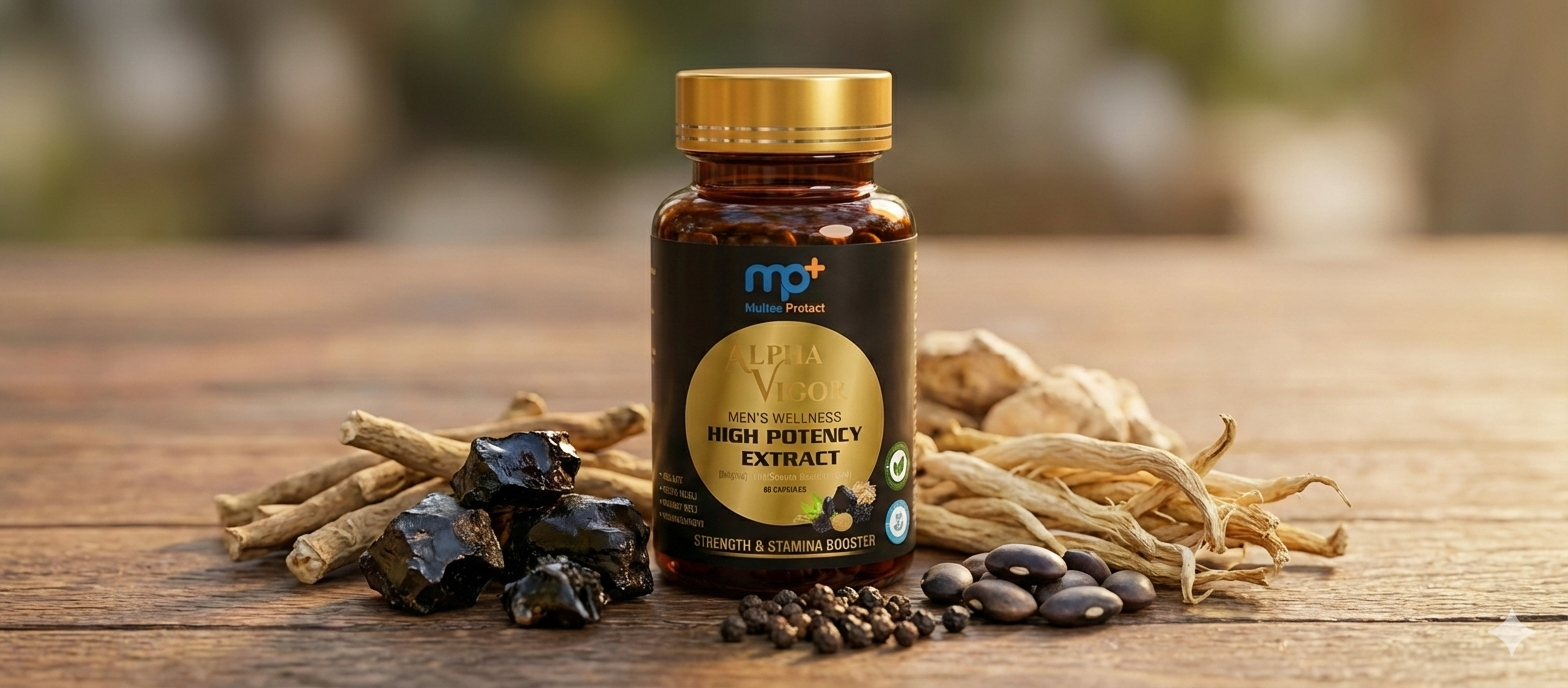 mp+ Alpha Vigor – Premium Ayurvedic Supplement for Men | Enriched with 20mcg Swarna Bhasma (Gold) & 250mg Pure Shilajit (50% Fulvic Acid) | Ashwagandha, Safed Musli, Kaunch Beej | Strength, Stamina & Energy | 60 Veg Capsules
